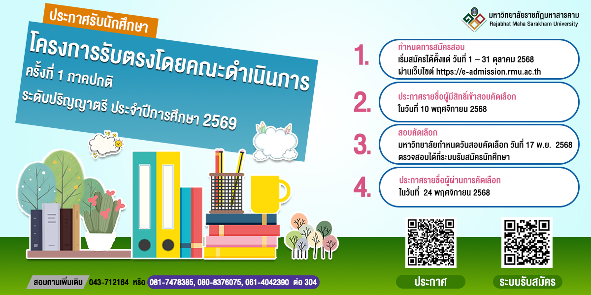 - เลขที่ผู้เสียภาษีของมหาวิทยาลัยราชภัฏมหาสารคาม 0994000401507 (16-03-2568)