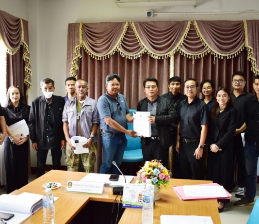 ประชุมส่งมอบงานให้ผู้ชนะการเสนอราคา โครงการจ้างก่อสร้างโครงการจ้างปรับปรุงลู่วิ่งสนามกีฬา ตำบลตลาด อำเภอเมืองมหาสารคาม จังหวัดมหาสารคาม จำนวน 1 งาน